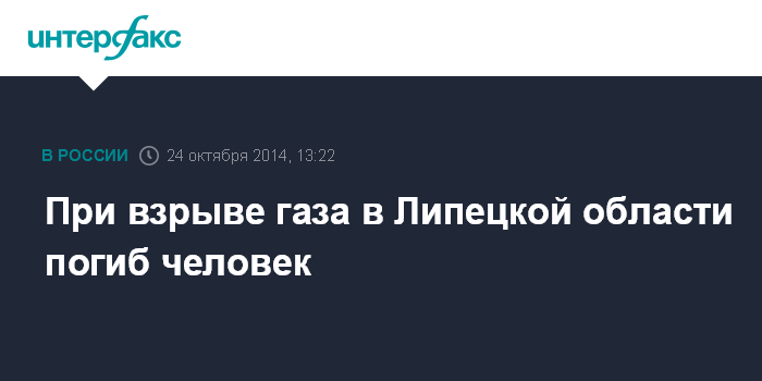 Москва. 24 октября. INTERFAX.RU - Взрыв баллона с газом в жилом доме в Липецкой области унес жизнь одного человека, его тело извлечено из-под завалов, сообщили "Интерфаксу" в пресс-службе Центрального регионального центра МЧС РФ.