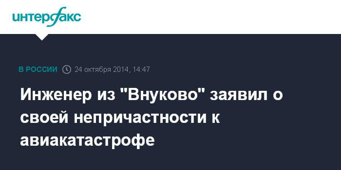 Инженер из "Внуково" заявил о своей непричастности к авиакатастрофе