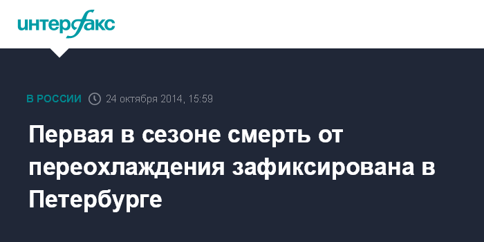 Москва. 24 октября. INTERFAX.RU - Житель Санкт-Петербурга скончался в больнице от переохлаждения, сообщил "Интерфаксу" источник в правоохранительных органах в пятницу.