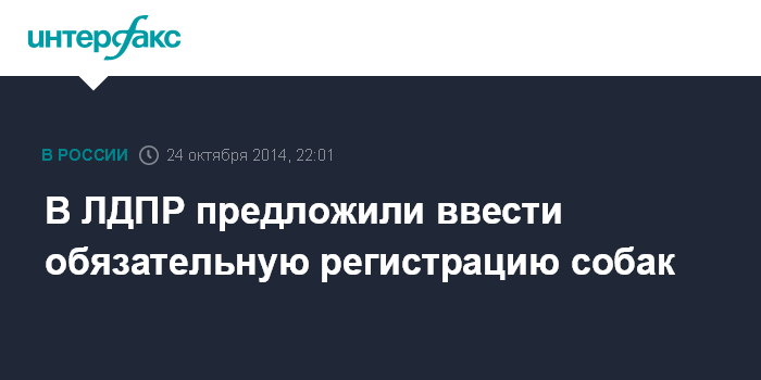 Москва. 24 октября. INTERFAX.RU - Депутаты от ЛДПР во главе с лидером Владимиром Жириновским внесли в Госдуму закон, обязывающий владельцев собак регистрировать своих питомцев, платить за это пошлину и проходить курс обучения начальным приемам дрессировки собак.
