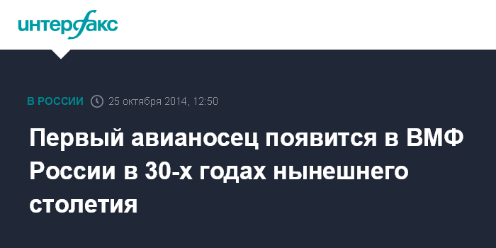 Первый авианосец появится в ВМФ России в 30-х годах нынешнего столетия