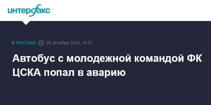 Москва. 25 октября. INTERFAX.RU - Автобус московского ФК ЦСКА с молодежным составом команды по дороге в один из московских аэропортов попал в аварию.
