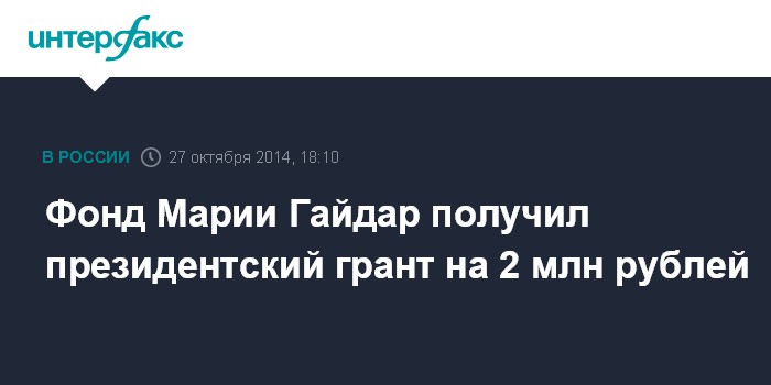 Фонд Марии Гайдар получил президентский грант на 2 млн рублей