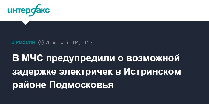 В МЧС предупредили о возможной задержке электричек в Истринском районе Подмосковья