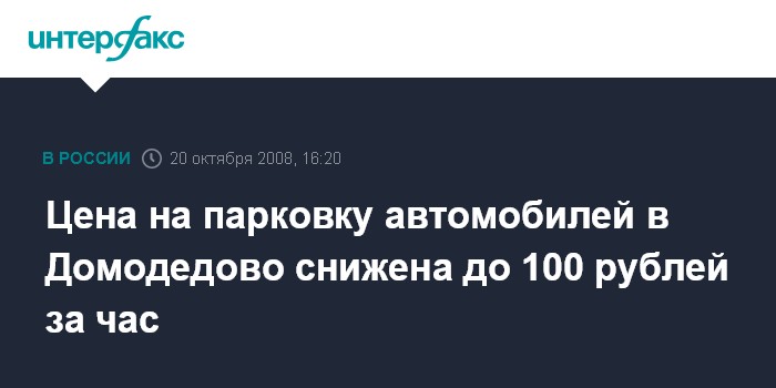 Москва. 20 октября. INTERFAX.RU – Цены на услуги автомобильной парковки в аэропорту Домодедово с 18 октября снижены с 150 рублей за час до 100 рублей в результате мирового соглашения между Федеральной антимонопольной службой (ФАС) РФ и ЗАО "Домодедово Аэротель".