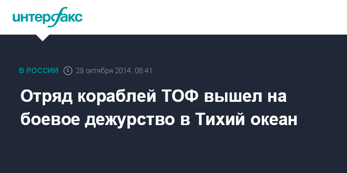Это уже второй отряд ТОФ, который отправился на боевое дежурство в Тихий океан. На прошлой неделе из Владивостока вышли в океан ракетный крейсер "Варяг" и БПК "Маршал Шапошников", их сопровождают танкер "Борис Бутома" и спасательное судно "Фотий Крылов".