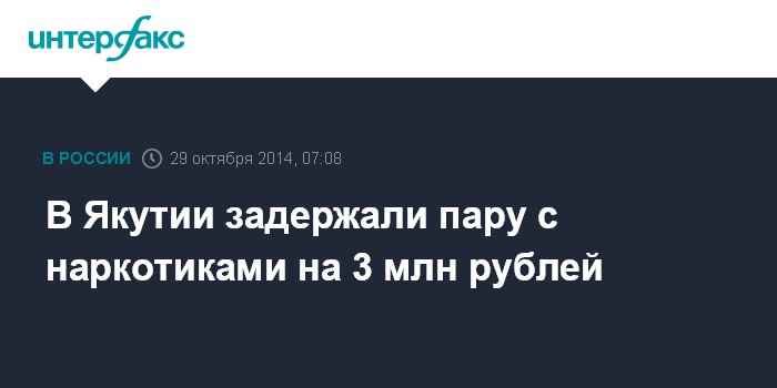 Москва. 29 октября. INTERFAX.RU - Предполагаемый организатор поставки "спайса" и синтетических наркотиков и девушка-курьер с партией на сумму более 3 млн рублей, задержаны в Якутске, сообщает в среду пресс-служба УФКСН России по Якутии.