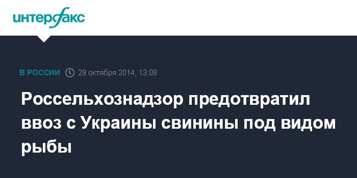 Москва. 29 октября. INTERFAX.RU - Россельхознадзор предотвратил ввоз в Крым с Украины партии свинины под видом пангасиуса.