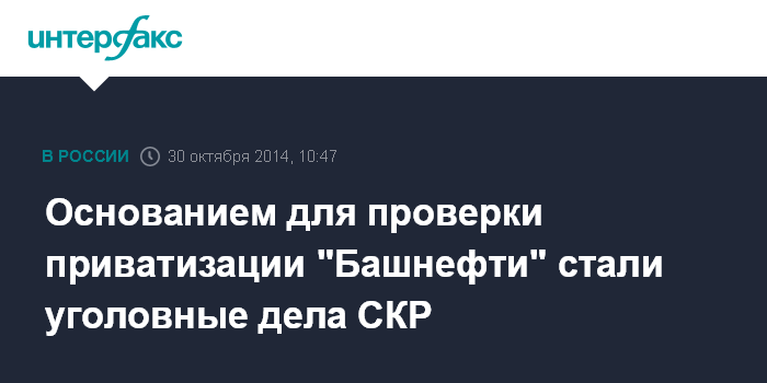 Основанием для проверки приватизации "Башнефти" стали уголовные дела СКР