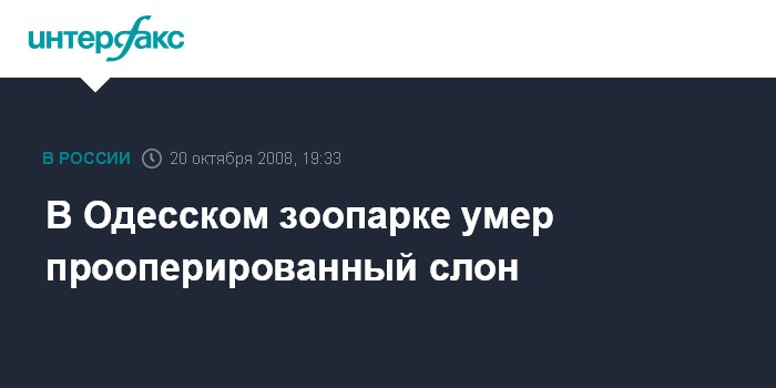 Москва. 20 октября. INTERFAX.RU - В Одесском зоопарке в воскресенье умер индийский слон Тарун, прооперированный группой российских и украинских врачей 13 августа, сообщил директор учреждения Юрий Кучеренко.