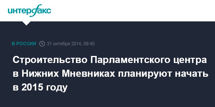 Строительство Парламентского центра в Нижних Мневниках планируют начать в 2015 году