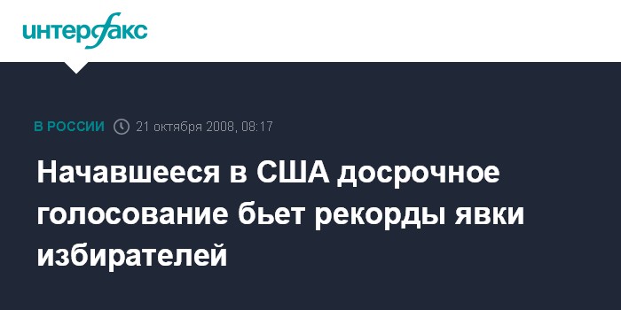 Москва. 21 октября. INTERFAX.RU - Рекордное число американцев, желающих проголосовать на президентских выборах, проявилось в ходе так называемого раннего голосования, начавшегося в понедельник во Флориде.