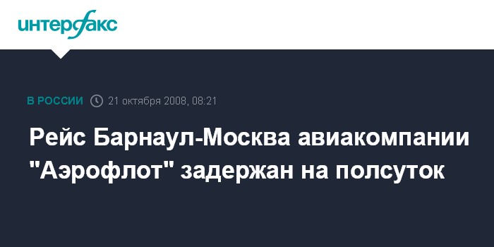 Рейс Барнаул-Москва авиакомпании "Аэрофлот" задержан на полсуток