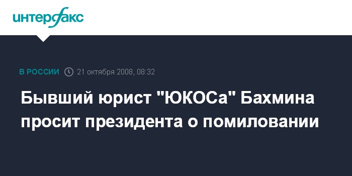 Москва. 21 октября. INTERFAX.RU - Осужденная бывший юрист НК "ЮКОС" Светлана Бахмина - мать двоих детей, находящаяся на восьмом месяце беременности, - подала в минувший понедельник прошение о помиловании президенту Дмитрию Медведеву, сообщил газете "Ведомости" ее адвокат Роман Головкин.