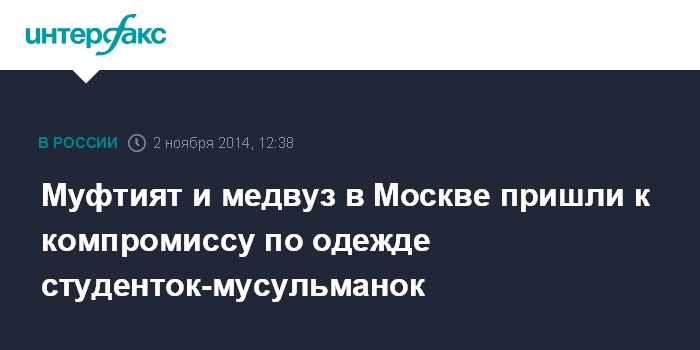 Москва. 2 ноября. INTERFAX.RU - Первый зампред Совета муфтиев России Рушан Аббясов и ректор Российского медицинского университета имени Пирогова Андрей Камкин нашли компромиссный вариант одежды для студенток-мусульманок.