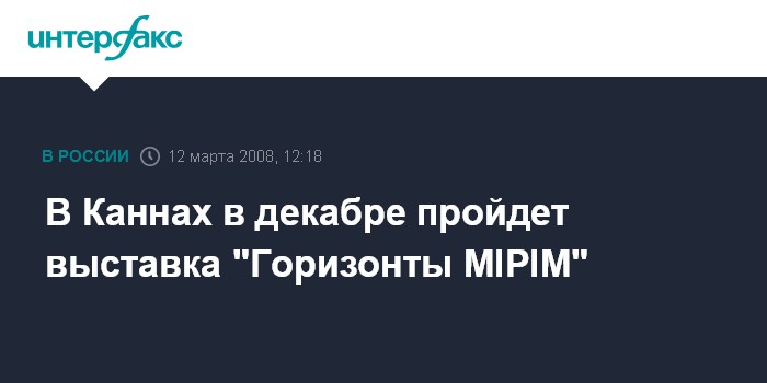 Киев. 12 марта. INTERFAX.RU - 2-4 декабря 2008 г. организаторы международной выставки недвижимости MIPIM решили провести выставку недвижимости "Горизонты MIPIM" в Каннах (Франция), сообщила агентству "Интерфакс" представитель MIPIM в Украине Инесса Протасова.