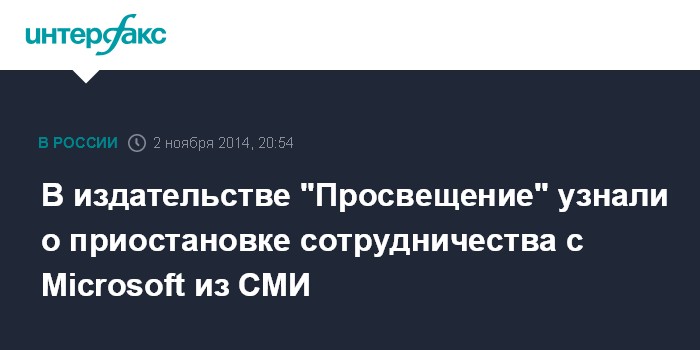 Москва. 2 ноября. INTERFAX.RU - В руководстве издательства "Просвещение" заявляют, что узнали о приостановке соглашения с Microsoft из СМИ и пока не знают, какая судьба ждет совместный проект разработки электронных учебников для российских школ.