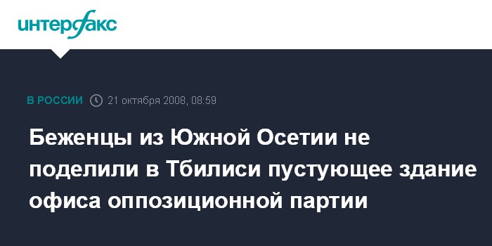 Москва. 21 октября. INTERFAX.RU - Около 50 беженцев из Южной Осетии поздно вечером в понедельник в центре Тбилиси попытались занять наполовину пустующее трехэтажное здание офиса партии "За единую Грузию", лидером которой является бывший министр обороны Грузии Ираклий Окруашвили, проживающий в настоящее время под статусом политического беженца в Париже.