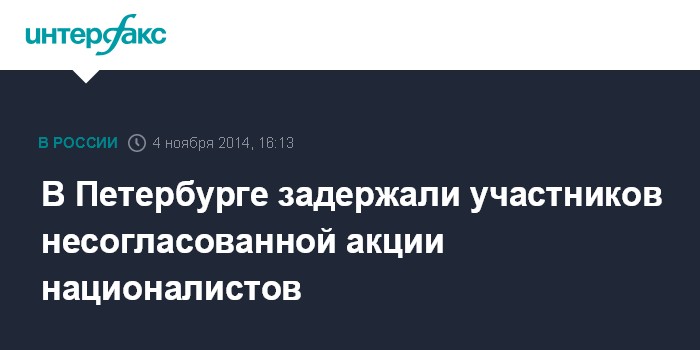Москва. 4 ноября. INTERFAX.RU - Сотрудники правоохранительных органов задержали шестерых участников несанкционированной акции националистов на Невском проспекте Петербурга, сообщила "Интерфаксу" одна из задержанных Дина Гарина.