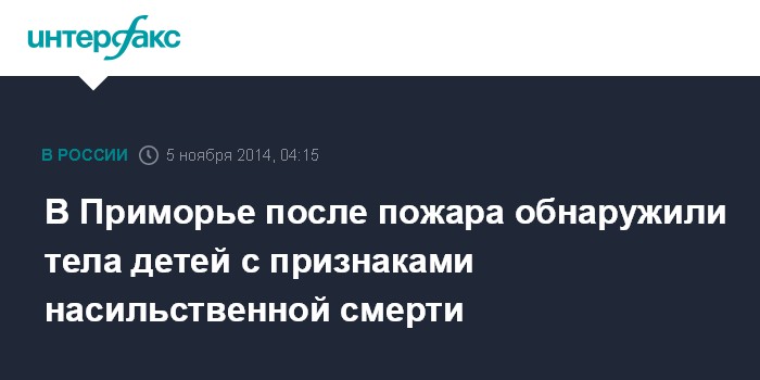 Москва. 5 ноября. INTERFAX.RU - Тела женщины и трех ее детей обнаружены в среду после тушения пожара в частном доме в приморском городе Артеме. Об этом сообщает пресс-служба краевого управления МВД