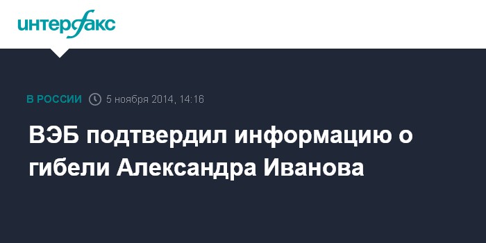 ВЭБ подтвердил информацию о гибели Александра Иванова