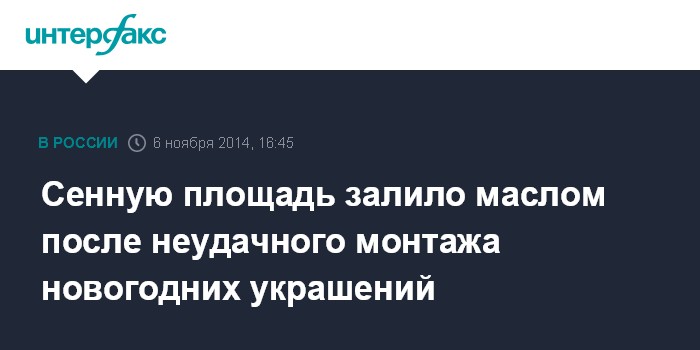 "Подрядчики предприятия "Ленсвет", которые выиграли конкурс на установку новогодних украшений, приступили к работам на Сенной площади. К сожалению, что-то у них пошло не так, и на тротуары и проезжую часть вытекло масло", - отметил собеседник агентства.