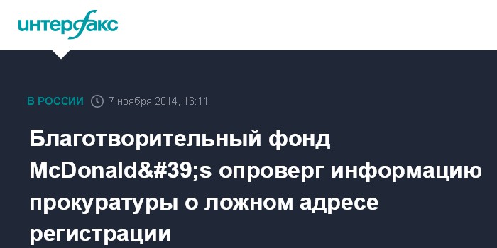 Благотворительный фонд McDonald's опроверг информацию прокуратуры о ложном адресе регистрации