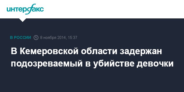 Москва. 8 ноября. INTERFAX.RU - В Кемеровской области задержан подозреваемый в убийстве девочки, сообщил "Интерфаксу" в субботу официальный представитель СКР РФ Владимир Маркин.