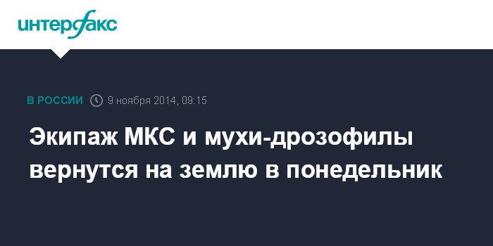 Экипаж МКС и мухи-дрозофилы вернутся на землю в понедельник