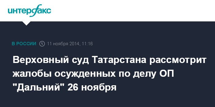 Верховный суд Татарстана рассмотрит жалобы осужденных по делу ОП "Дальний" 26 ноября