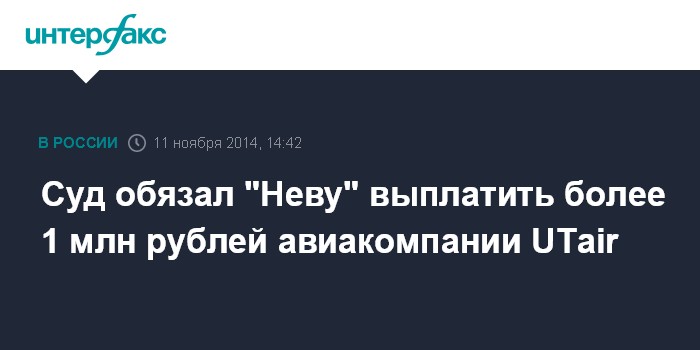 Суд обязал "Неву" выплатить более 1 млн рублей авиакомпании UTair