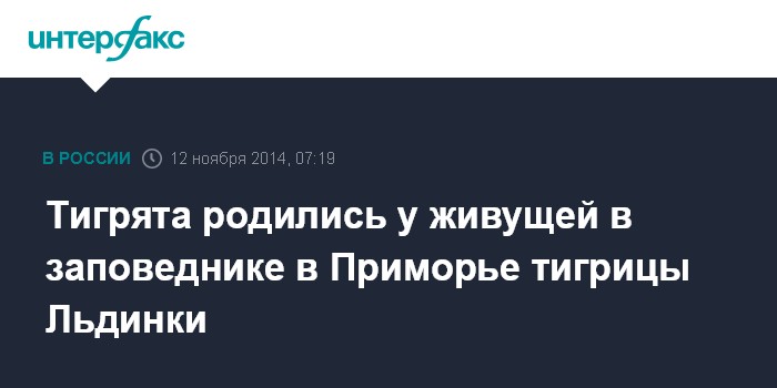 Москва. 12 ноября. INTERFAX.RU - Тигрица Льдинка, обитающая в Лазовском заповеднике в Приморье, принесла потомство.