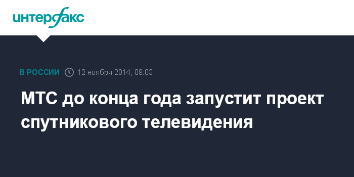Москва. 12 ноября. INTERFAX.RU - ОАО "Мобильные Телесистемы" до конца 2014 года выйдет на рынок спутникового телевидения, сообщил "Интерфаксу" представитель оператора Дмитрий Солодовников.