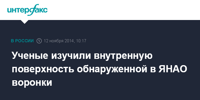 Москва. 12 ноября. INTERFAX.RU - Ученые завершили экспедицию к воронке, найденной этим летом в Ямало-Ненецком автономном округе, сообщает пресс-служба губернатора ЯНАО.