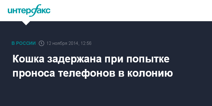 Москва. 12 ноября. INTERFAX.RU - В Коми при попытке доставить в исправительную колонию сотовые телефоны задержана кошка, отправленная туда бывшим заключенным.