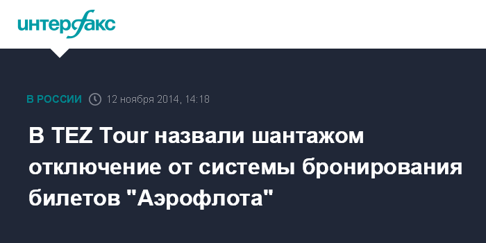 В TEZ Tour назвали шантажом отключение от системы бронирования билетов "Аэрофлота"