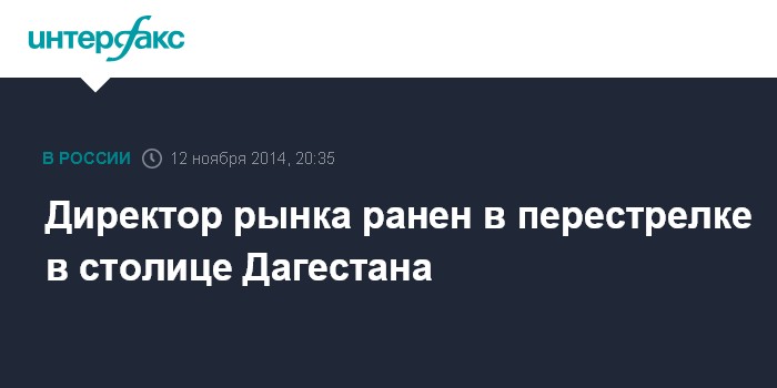Москва. 12 ноября. INTERFAX.RU - Два человека, в том числе директор крупного рынка, пострадали в перестрелке в центре Махачкалы, в тяжелом состоянии они находятся в больнице, сообщил агентству "Интерфакс" источник в правоохранительных органах Дагестана.