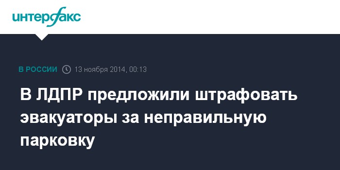 Москва. 13 ноября. INTERFAX.RU - Депутаты от ЛДПР предложили наказывать водителей автомобилей-эвакуаторов за остановку и стоянку в запрещенных для этого местах в размере 5 тысяч рублей.