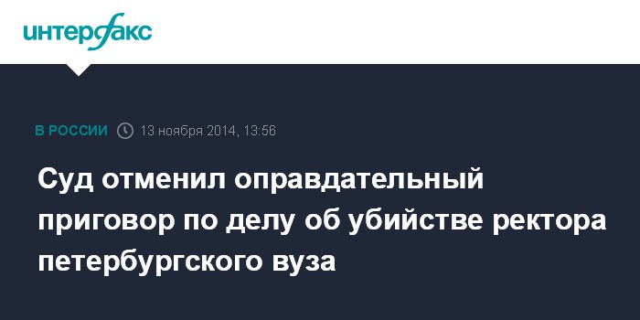 Москва. 13 ноября. INTERFAX.RU - Верховный суд РФ в четверг отменил оправдательный приговор, вынесенный ранее обвиненному в убийстве ректора Санкт-Петербургского государственного университета сервиса и экономики (СПбГУСЭ) Александра Викторова.
