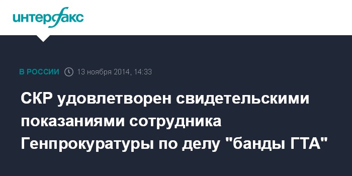СКР удовлетворен свидетельскими показаниями сотрудника Генпрокуратуры по делу "банды ГТА"