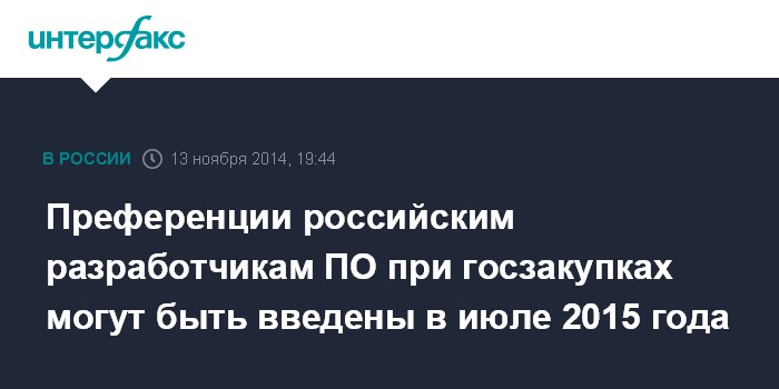 Преференции российским разработчикам ПО при госзакупках могут быть введены в июле 2015 года