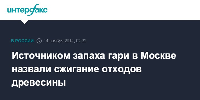 Москва. 14 ноября. INTERFAX.RU - Причиной запаха гари в Москве может быть плановое сжигание срубленных деревьев в Подмосковье. Об этом "Интерфаксу" сообщили в пресс-службе ГУ МЧС России по Московской области.