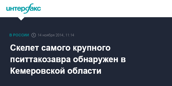 Москва. 14 ноября. INTERFAX.RU - Останки самого крупного динозавра из вида пситтакозавр сибирский, длина тела которого от головы до кончика хвоста могла достигать трех метров, обнаружены в Кемеровской области.