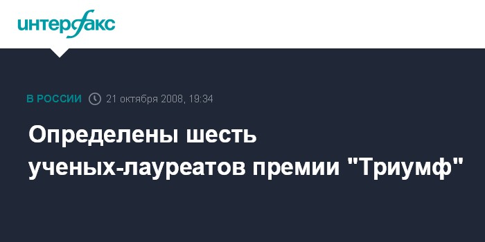 Москва. 21 октября. INTERFAX.RU - Определены лауреаты премии "Триумф" за 2008 г. в области науки.
