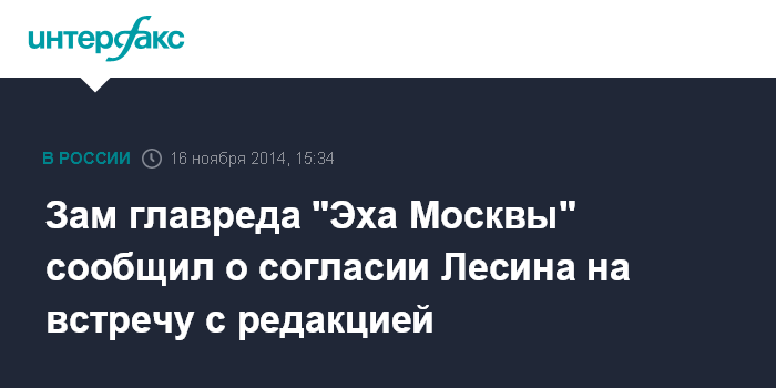 Зам главреда "Эха Москвы" сообщил о согласии Лесина на встречу с редакцией