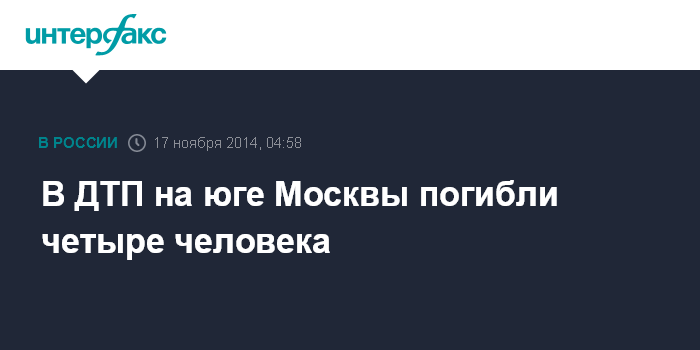 Москва. 17 ноября. INTERFAX.RU - В результате столкновения трех машин на юге столицы погибли четыре человека. Об этом "Интерфаксу" сообщили в пресс-службе управления ГИБДД Москвы.