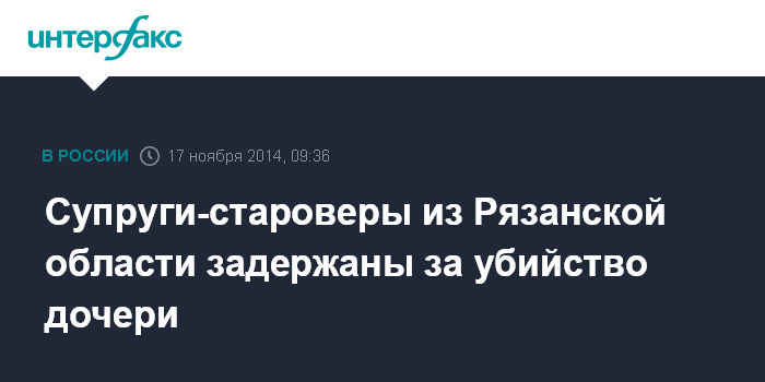 Супруги-староверы из Рязанской области задержаны за убийство дочери