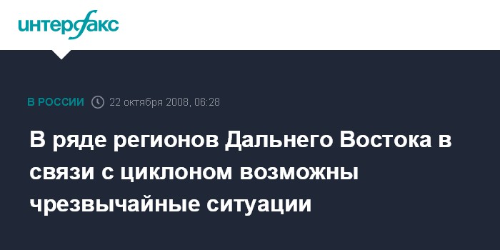 Хабаровск. 22 октября. ИНТЕРФАКС-ДАЛЬНИЙ ВОСТОК - Дальневосточный региональный центр (ДВРЦ) МЧС РФ в среду распространил оперативное предупреждение о возможном возникновении ЧС в ряде регионов в связи с прохождением циклона, благодаря которому с 22 по 25 октября ожидается мокрый снег и шквальное усиление ветра.
