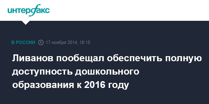 Ливанов пообещал обеспечить полную доступность дошкольного образования к 2016 году