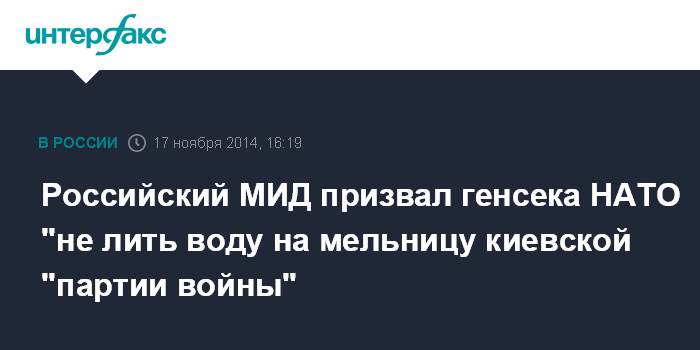 Российский МИД призвал генсека НАТО "не лить воду на мельницу киевской "партии войны"